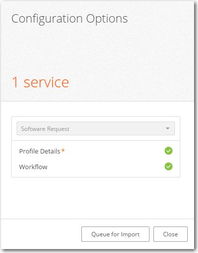 - Click the Import 1 Item button. The item is imported from App Portal to BMC MyIT, and the Catalog Queue page opens.