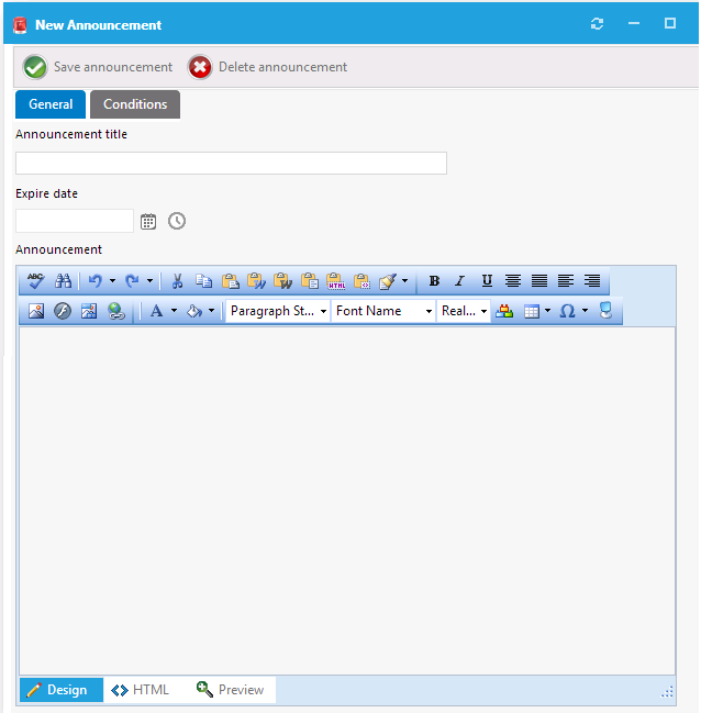 5. In the Expire date field, enter the date and time after which you no longer want this announcement displayed. If you do not enter an Expire date , the announcement will not expire.